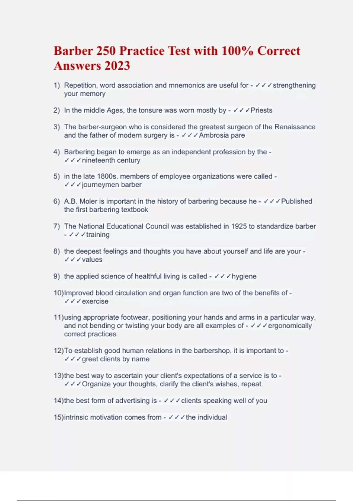 Barber 250 Practice Test with 100% Correct Answers 2023