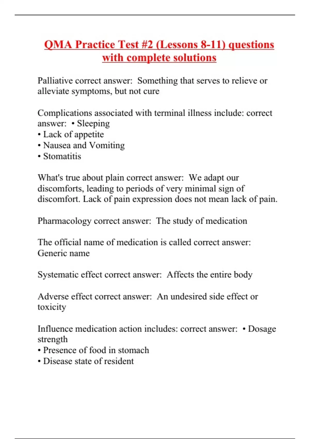 QMA Practice Test #2 (Lessons 8-11) questions with complete solutions