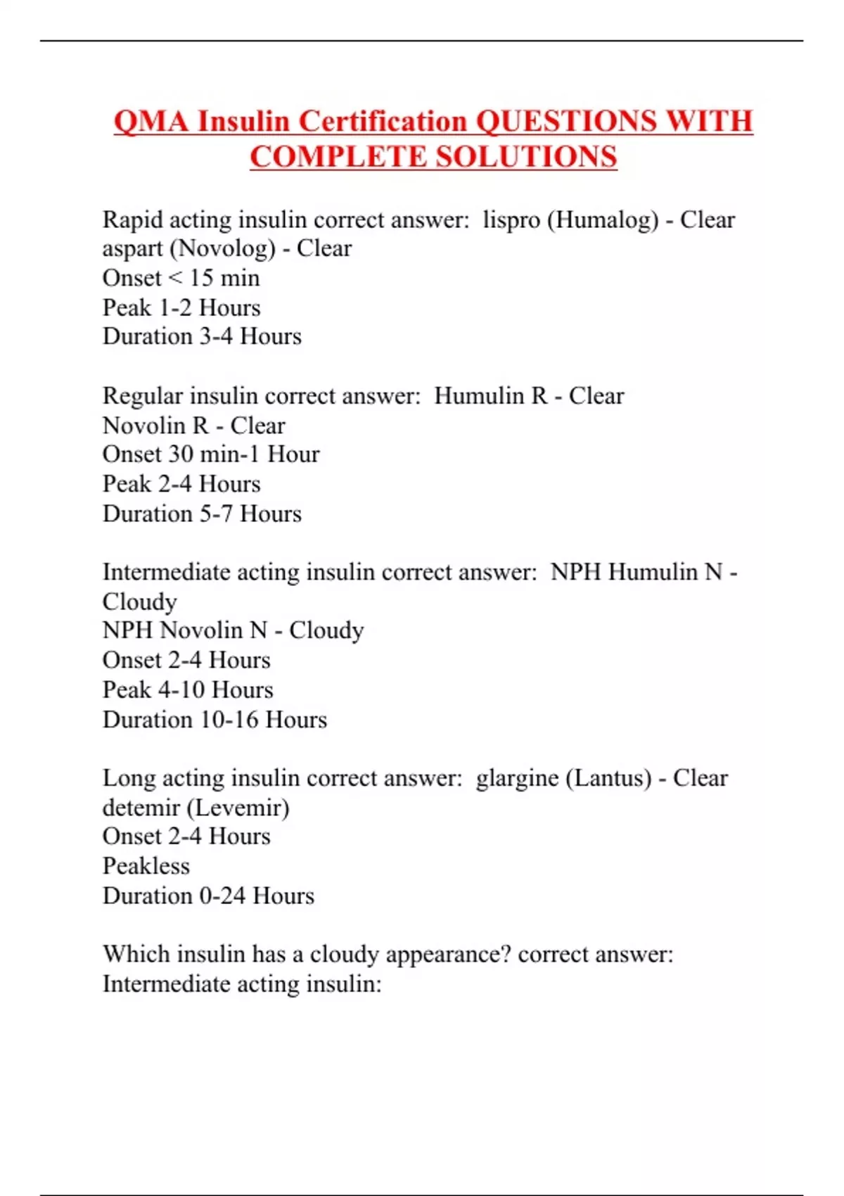 QMA Insulin Certification QUESTIONS WITH COMPLETE SOLUTIONS.