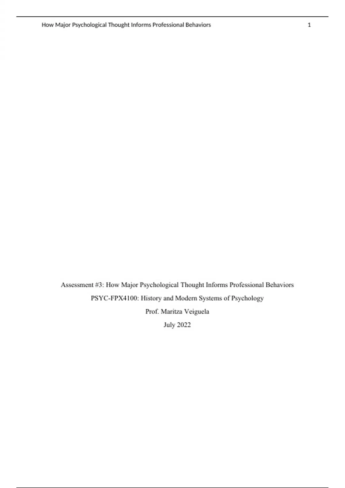 PSYC-FPX4100 Assessment 3 How Major Psychological Thought Informs Professional Behaviors.docx