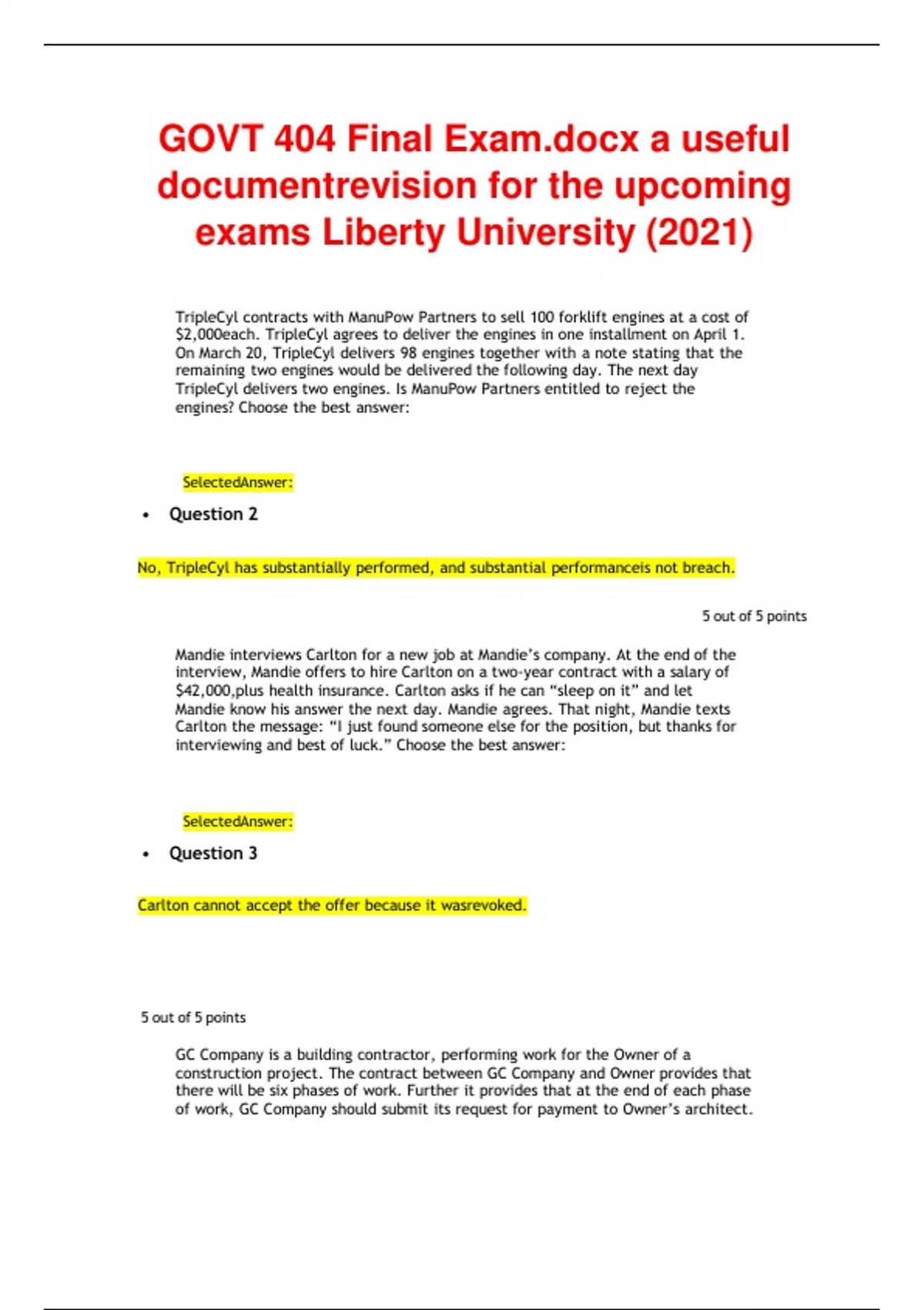 GOVT 404 LIBERTY UNIVERSITY FINAL EXAMS 2023
