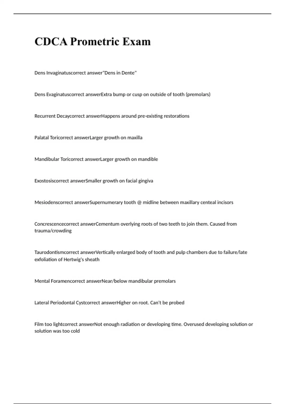 CDCA Prometric Exam 2023 with 100% correct answers