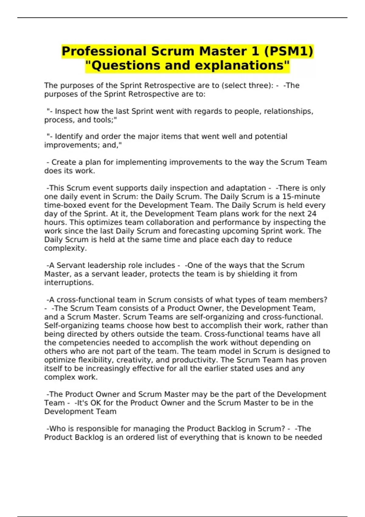 Professional Scrum Master 1 (PSM1) "Questions and explanations"