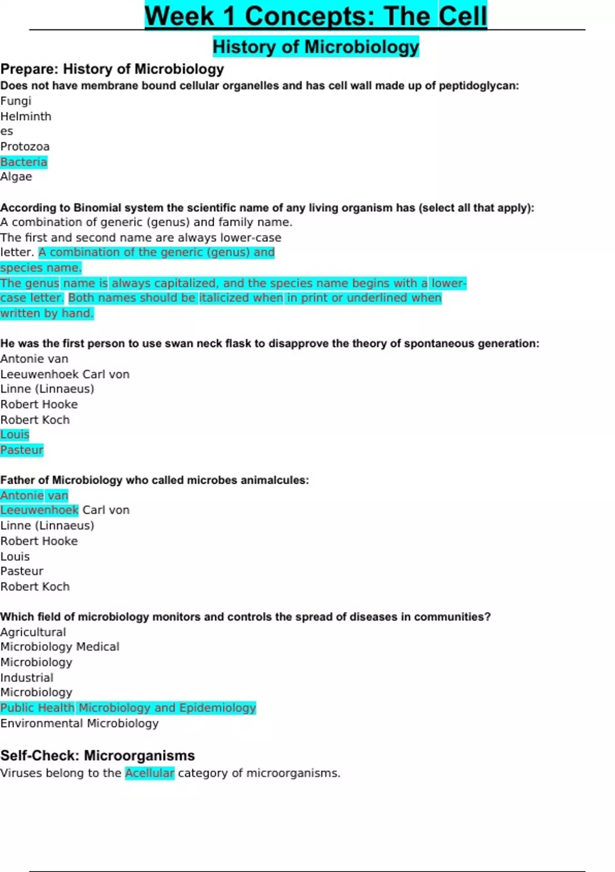 Prepare: History of Microbiology Does not have membrane bound cellular organelles and has cell wall made up of peptidoglycan: Fungi Helminthes Protozoa Bacteria Algae