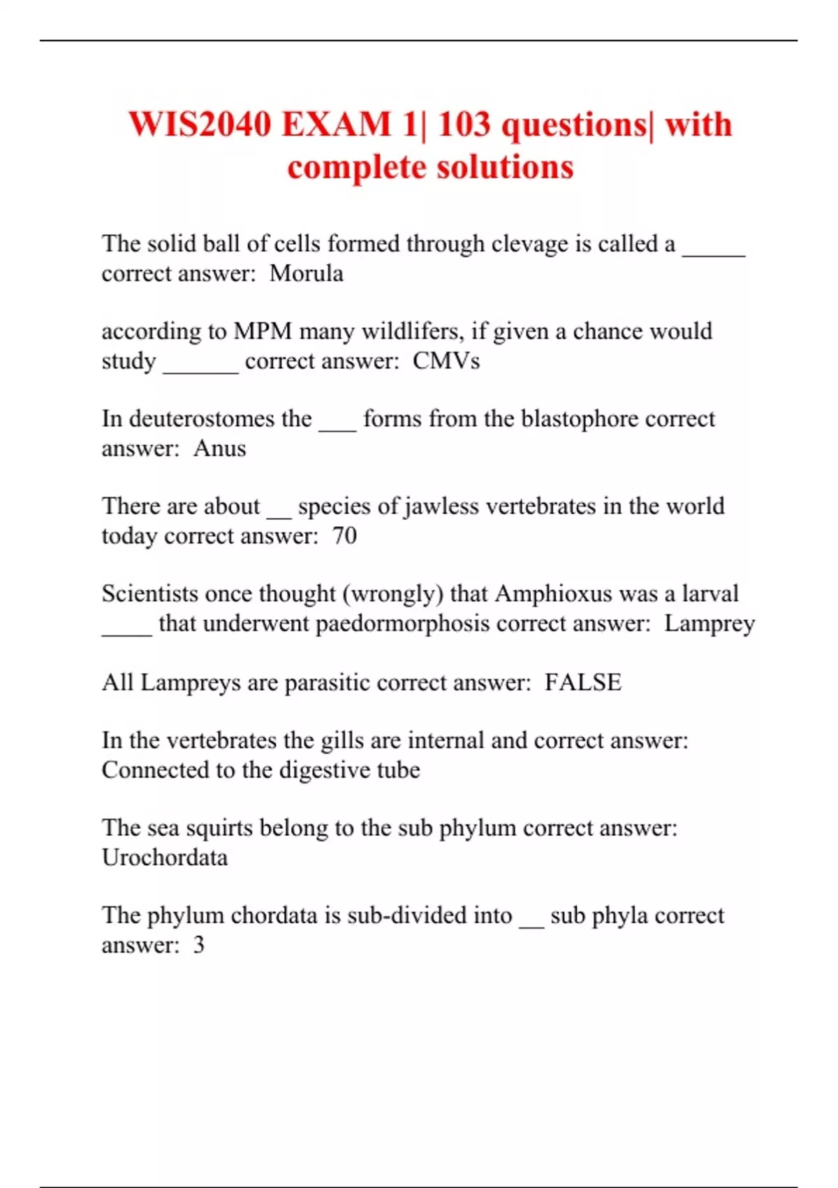 wis2040 exam 1| 103 questions| with complete solut