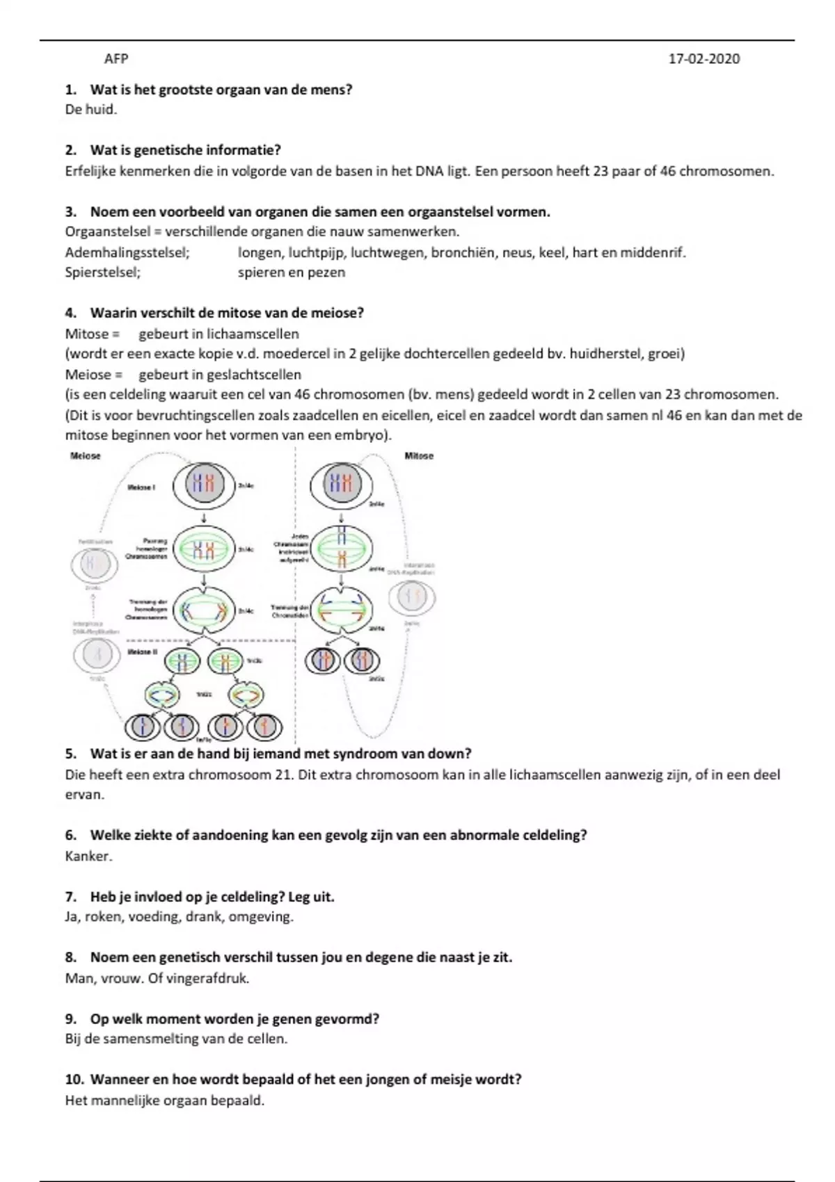 8. Noem een genetisch verschil tussen jou en degene die naast je zit.