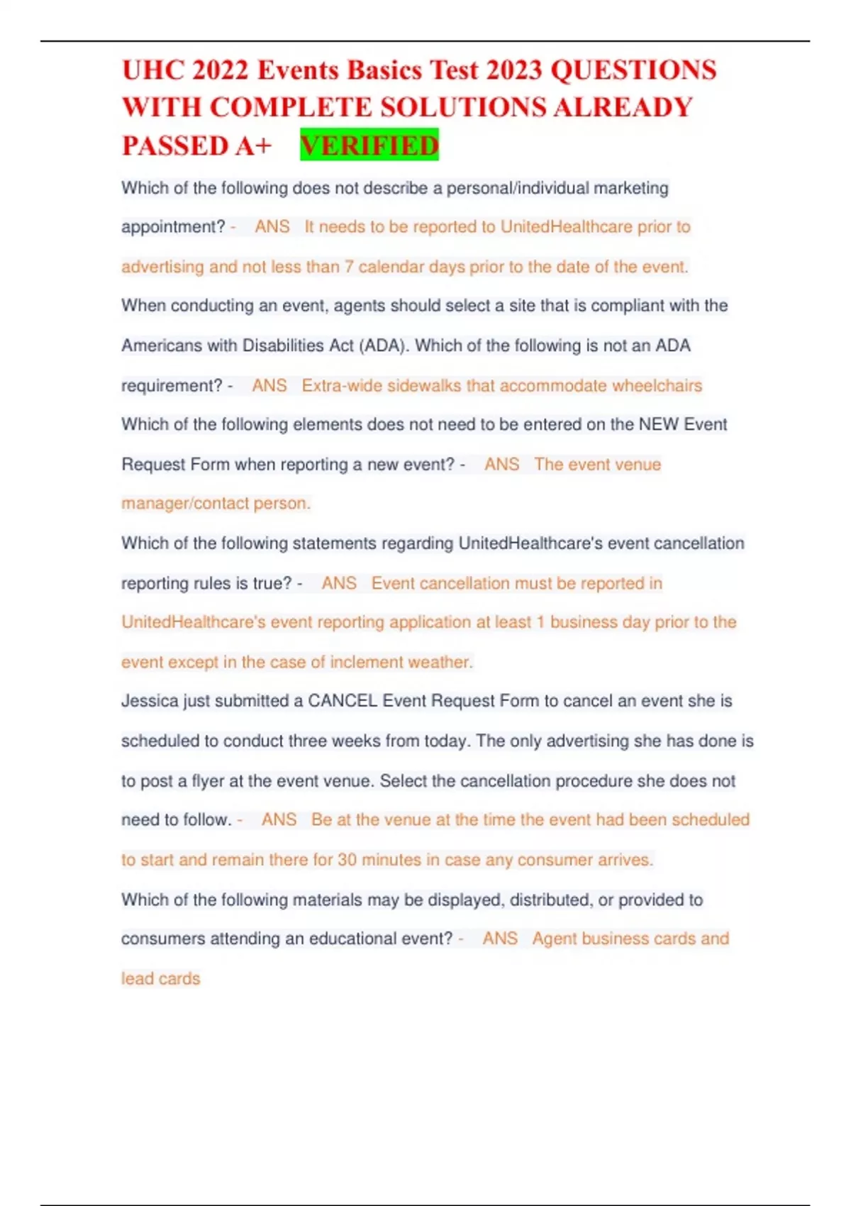 UHC 2022 Events Basics Test 2023 QUESTIONS WITH COMPLETE SOLUTIONS ALREADY PASSED A+ VERIFIED