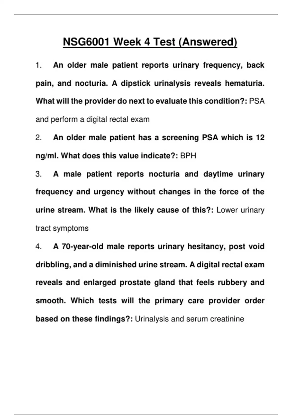 NSG6001 Week 4 Test 2023 (Answered)