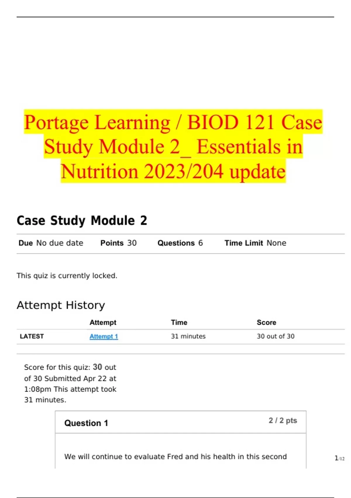 Portage Learning / BIOD 121 Case Study Module 2_ Essentials in Nutrition 2023/204 update