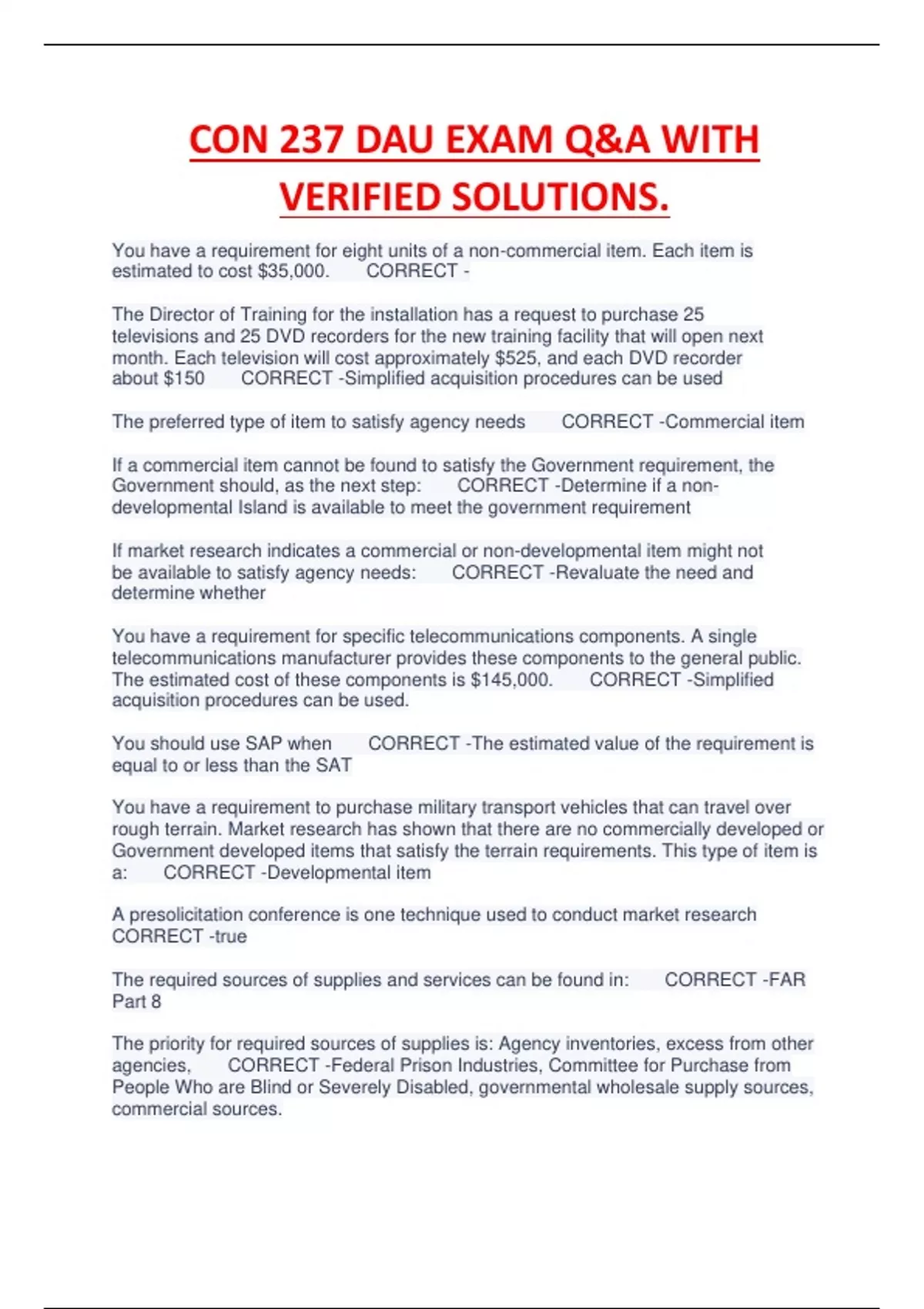 CON 237 DAU EXAM Q&A WITH VERIFIED SOLUTIONS RATED A.
