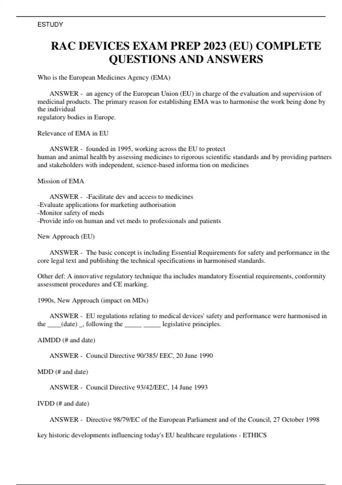 RAC DEVICES EXAM PREP 2023 (EU) COMPLETE QUESTIONS AND ANSWERS