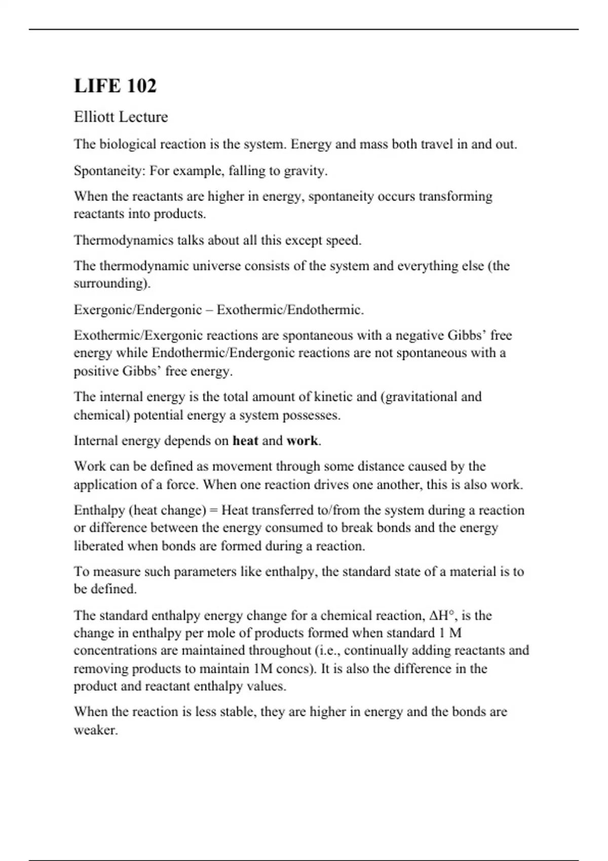 Exothermic/Exergonic reactions are spontaneous with a negative Gibbs’ free
