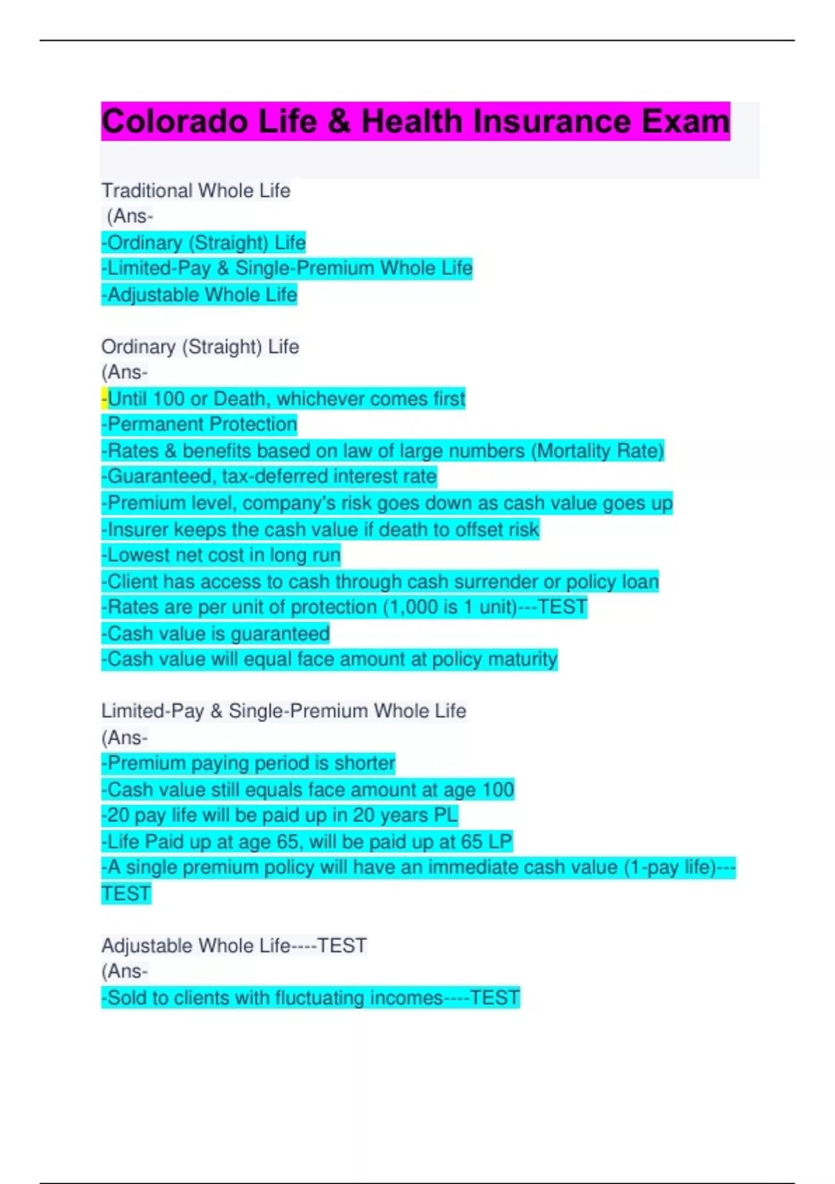 Colorado Life & Health Insurance Exam: Latest Updated: Guaranteed A+ Guide
