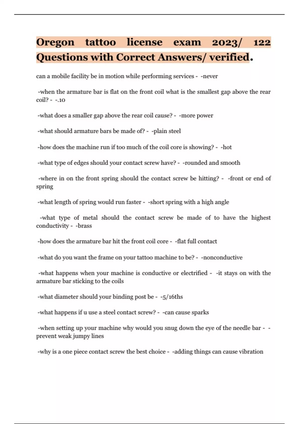 Oregon tattoo license exam 2023/ 122 Questions with Correct Answers/ verified.