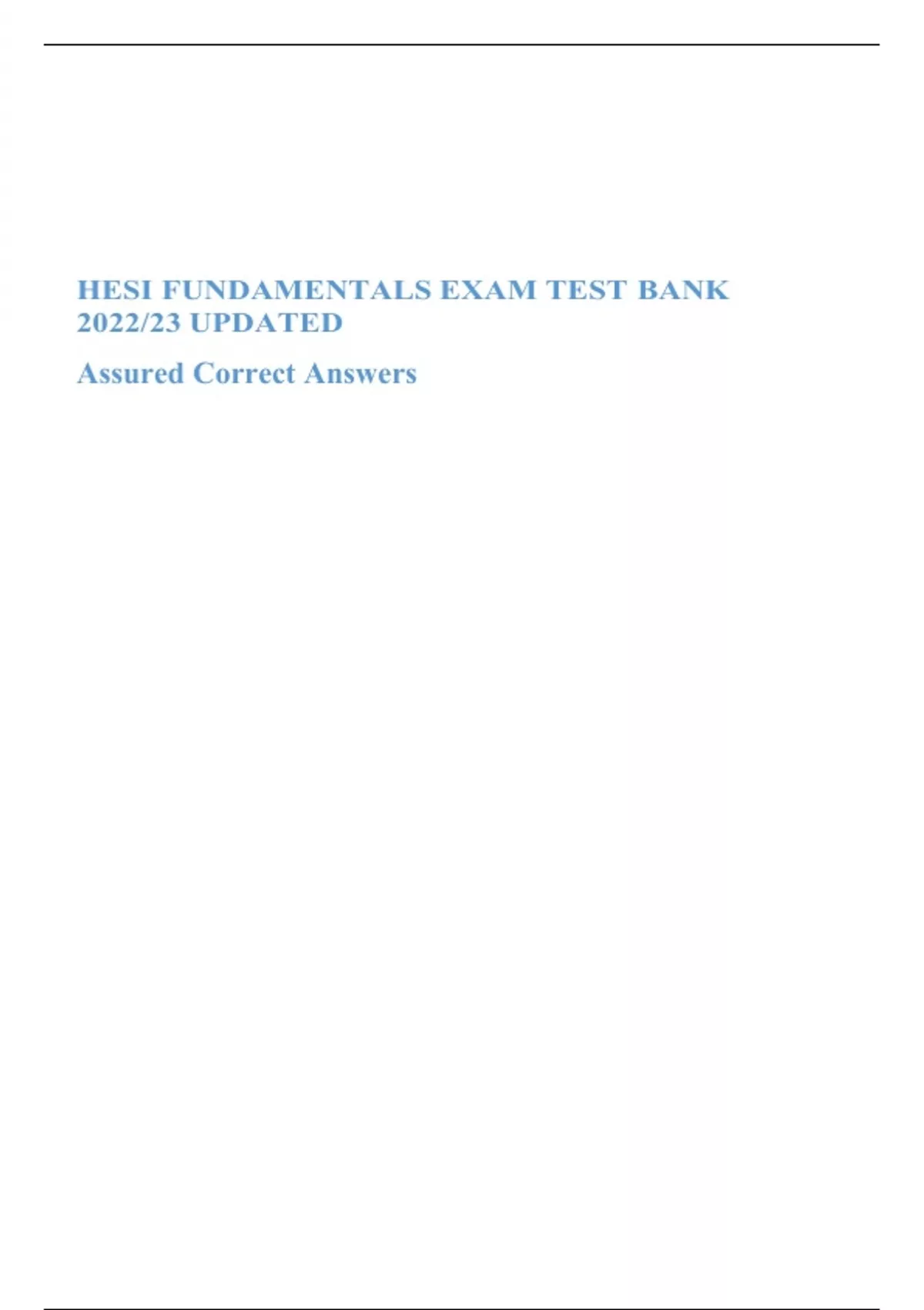HESI FUNDAMENTALS EXAM TEST BANK 2022/23 UPDATED (Assured 100% Correct Answers)