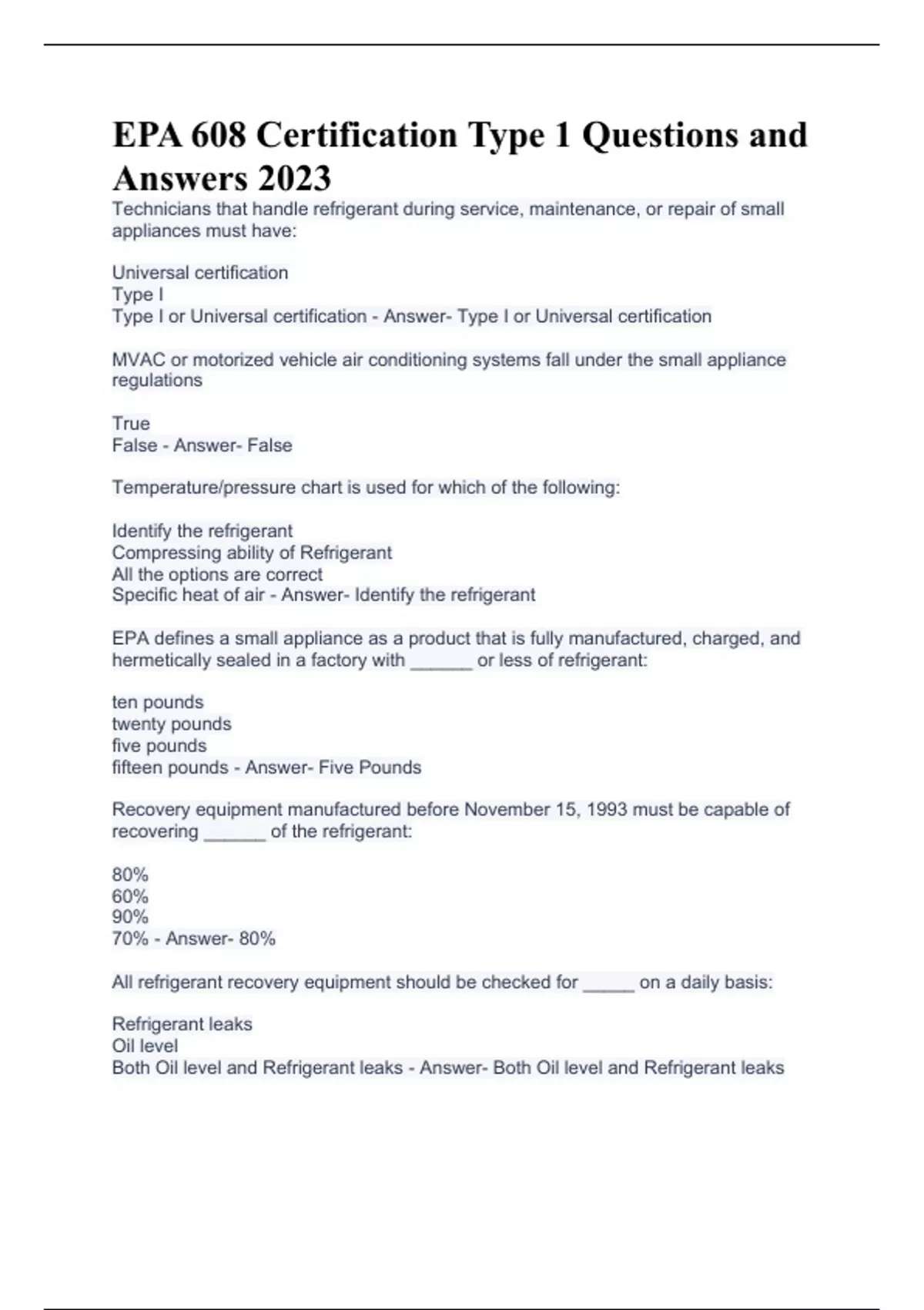 EPA 608 Certification Type 1 Questions and Answers 2023