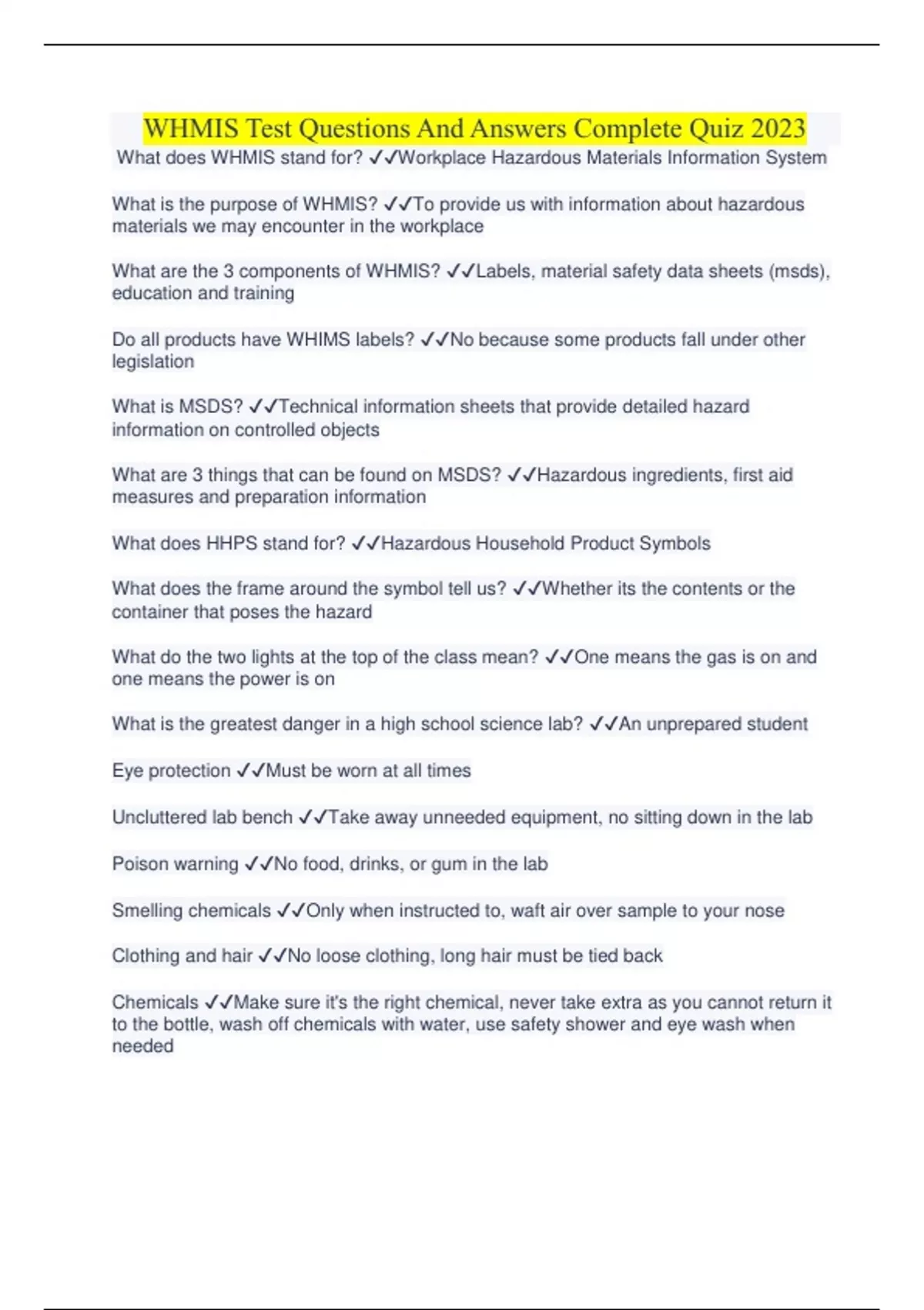 WHMIS Test Questions And Answers Complete Quiz 2023 WHMIS Test Questions And Answers Complete Quiz 2023 WHMIS Test Questions And Answers Complete Quiz 2023