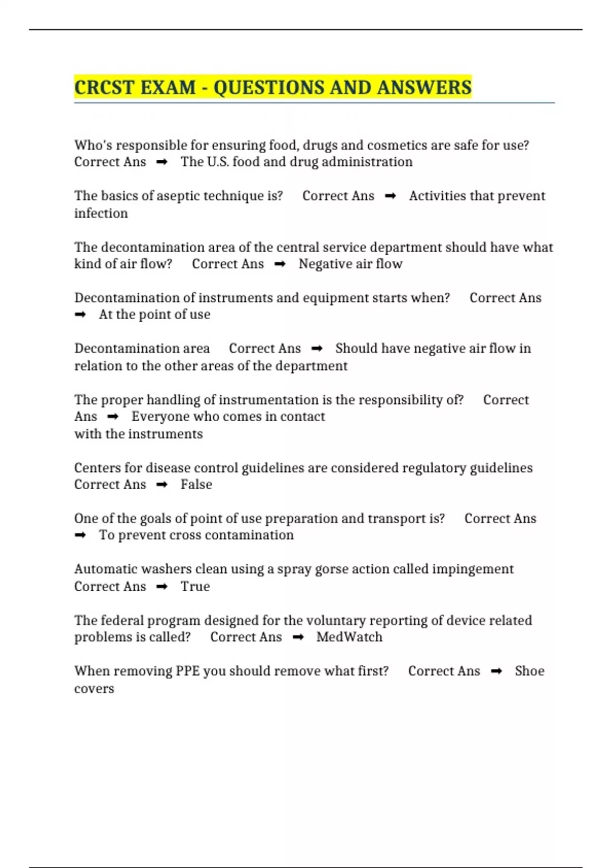 CRCST EXAM - QUESTIONS AND ANSWERS
