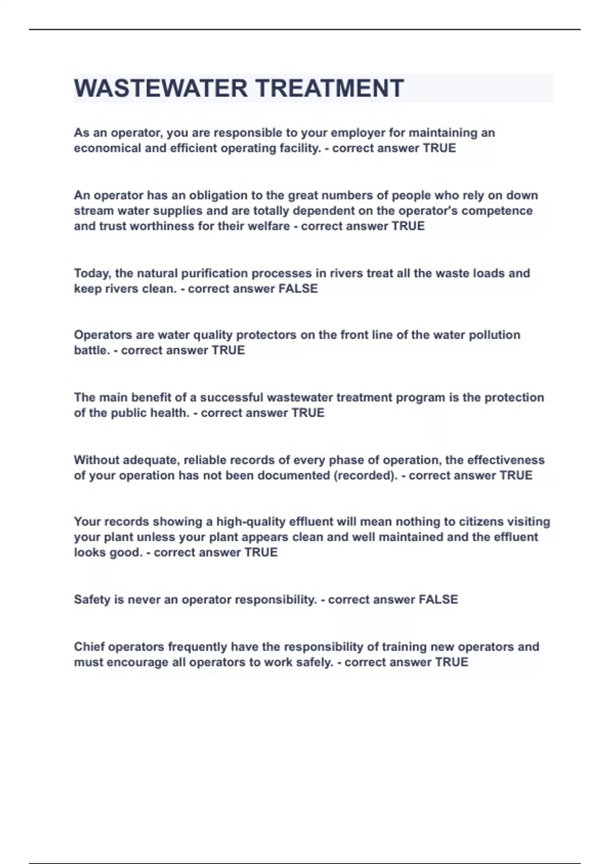 WASTEWATER TREATMENT|UPDATED&VERIFIED|100% SOLVED|GUARANTEED SUCCESS