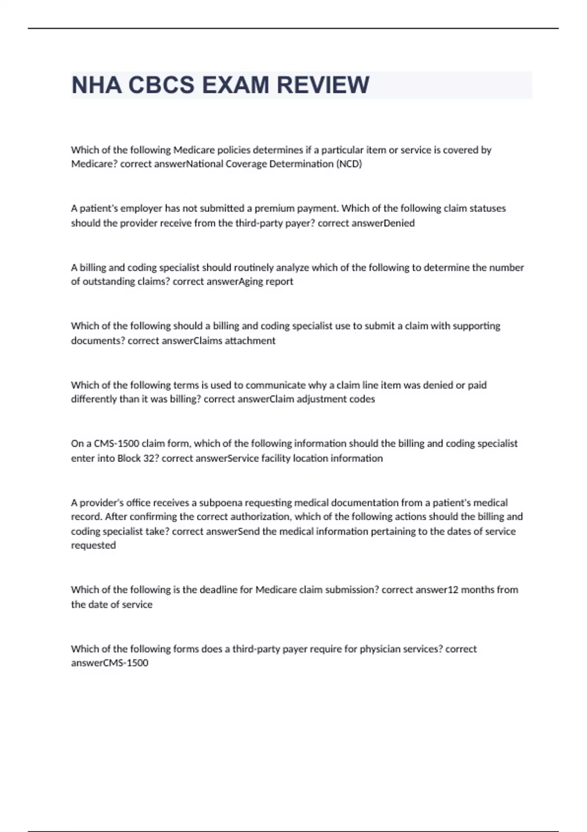 Which of the following is the deadline for Medicare claim submission? correct answer12 months from