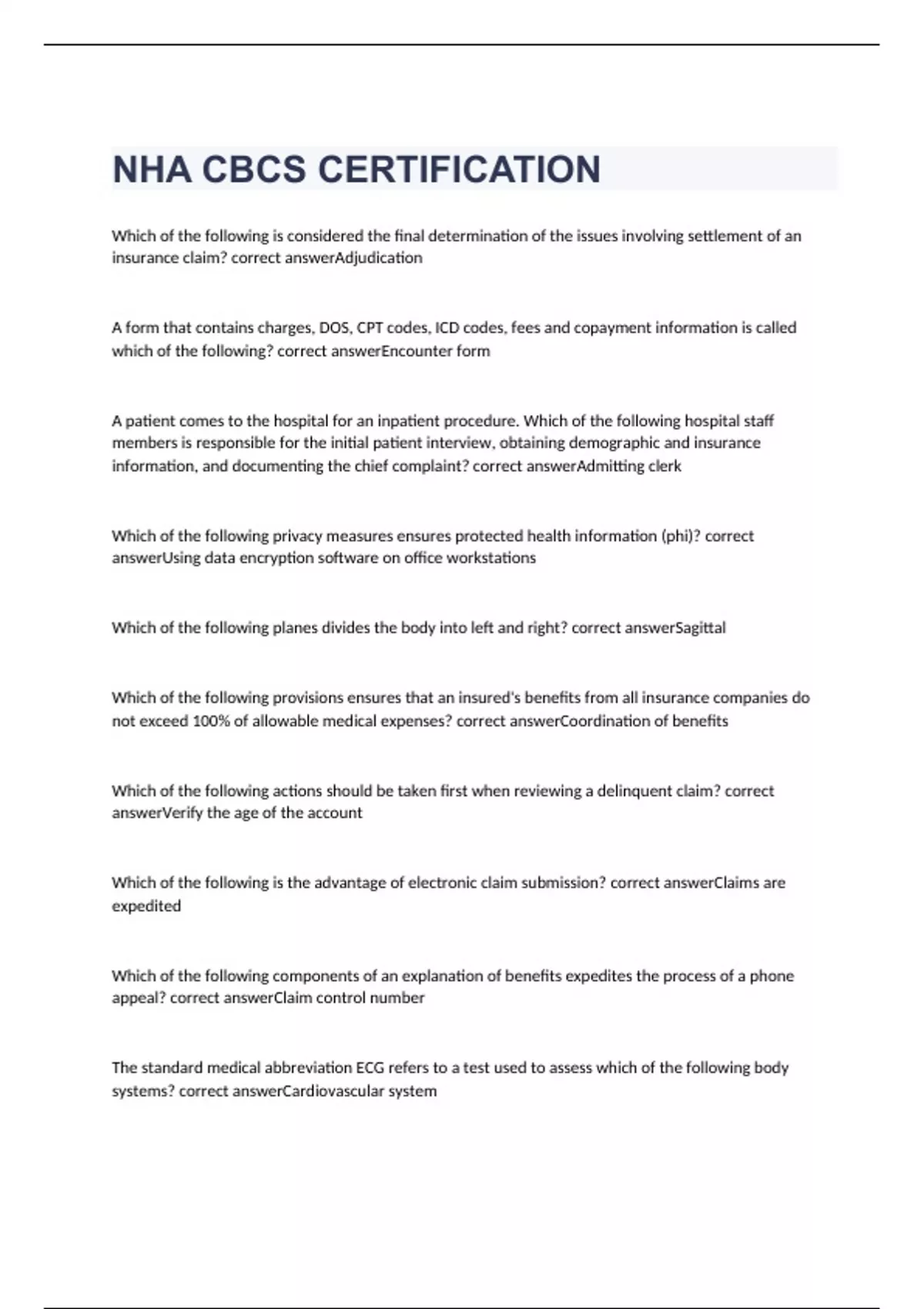 billing and coding specialist to take? correct answerUse arial size 10 font
