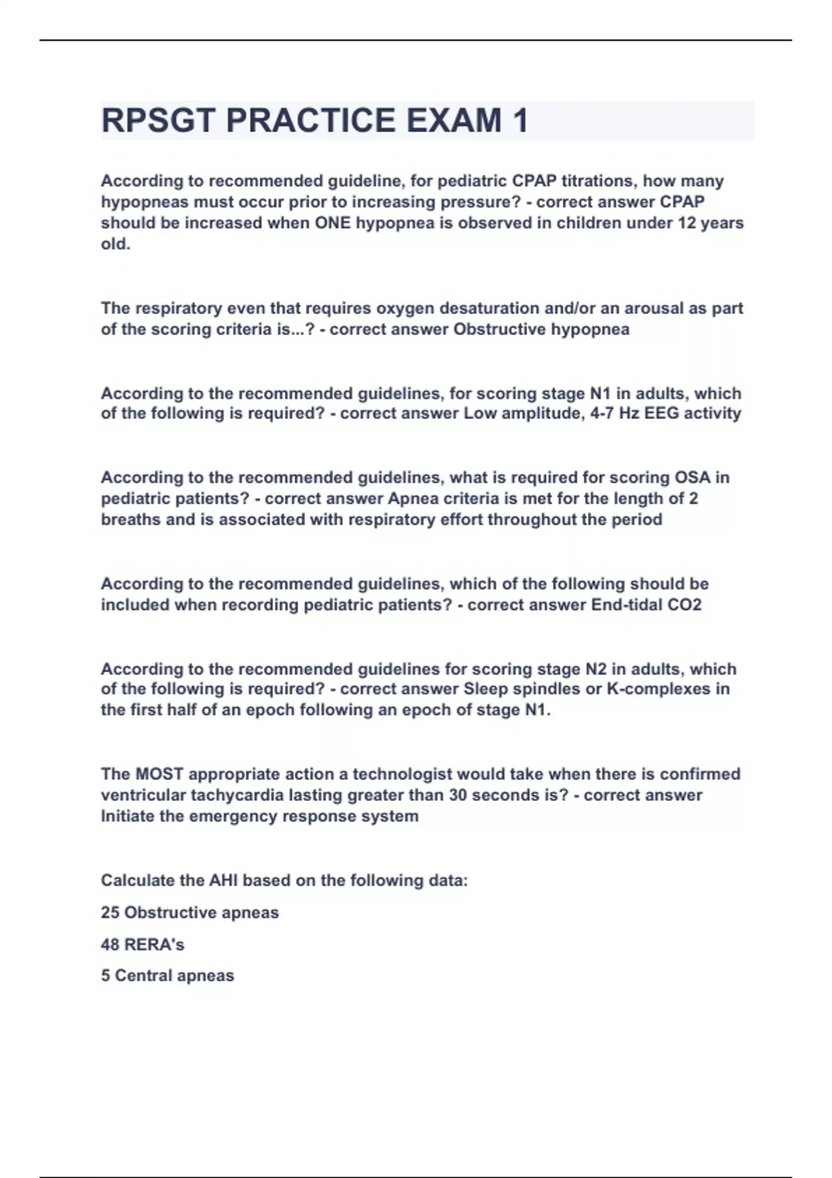 RPSGT PRACTICE EXAM 1|UPDATED&VERIFIED|100% SOLVED|GUARANTEED SUCCESS