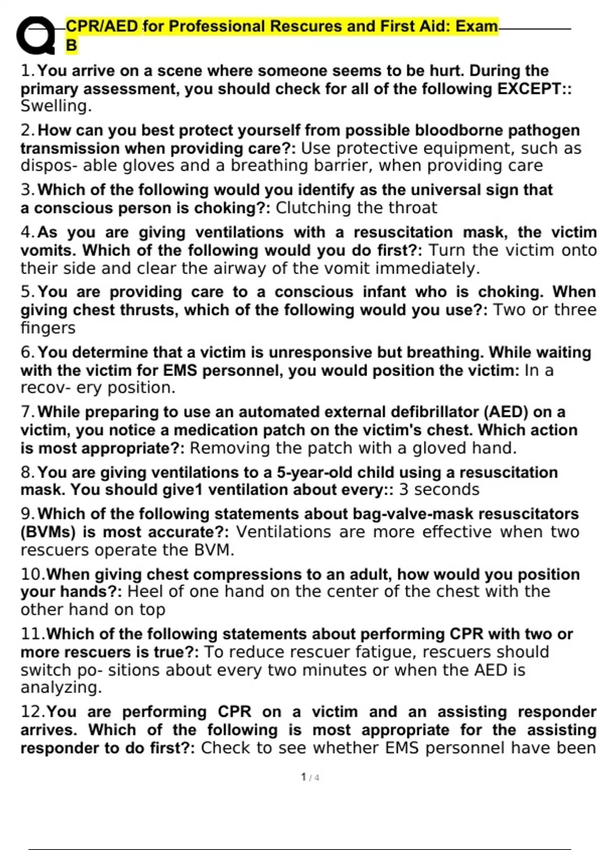 CPRAED for Professional Rescures and First Aid Exam Questions and Answers Latest [100% correct answers]