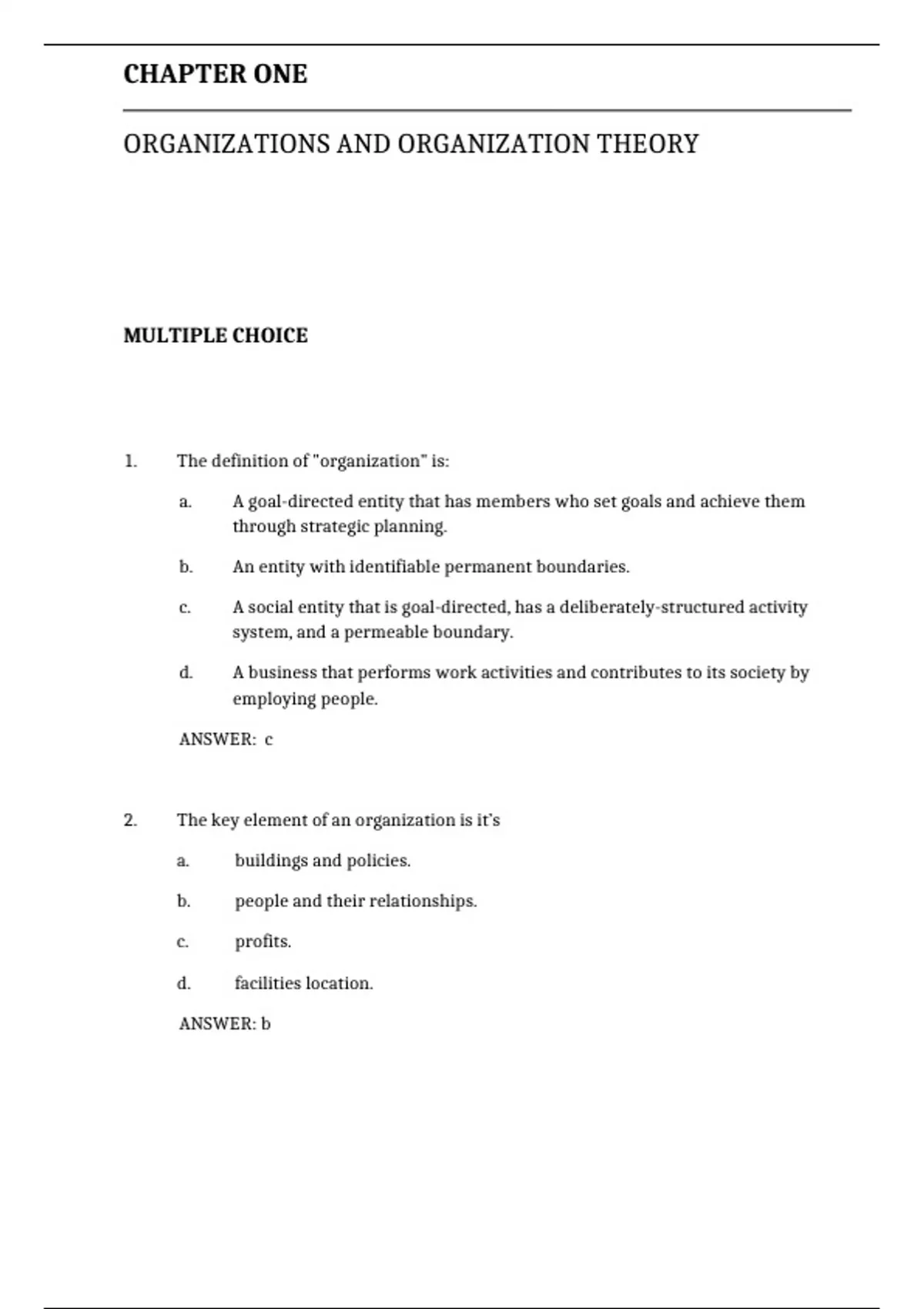 1. The definition of "organization" is: