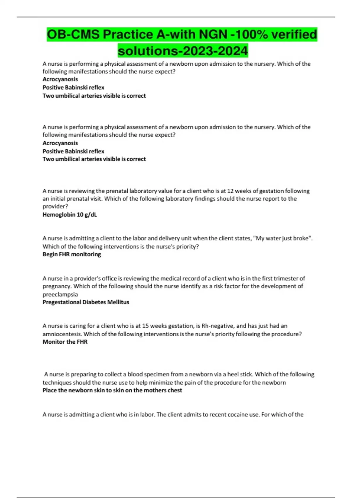 OB-CMS Practice A-with NGN -100% verified solutions-