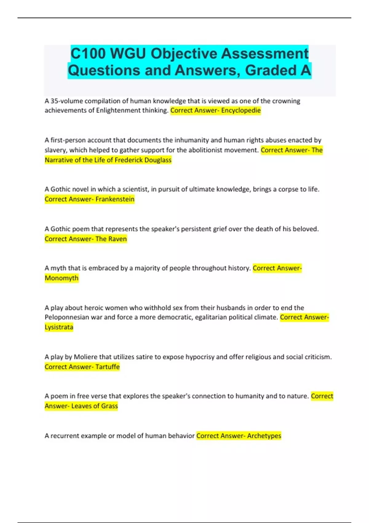 C100 WGU Objective Assessment Questions and Answers, Graded A