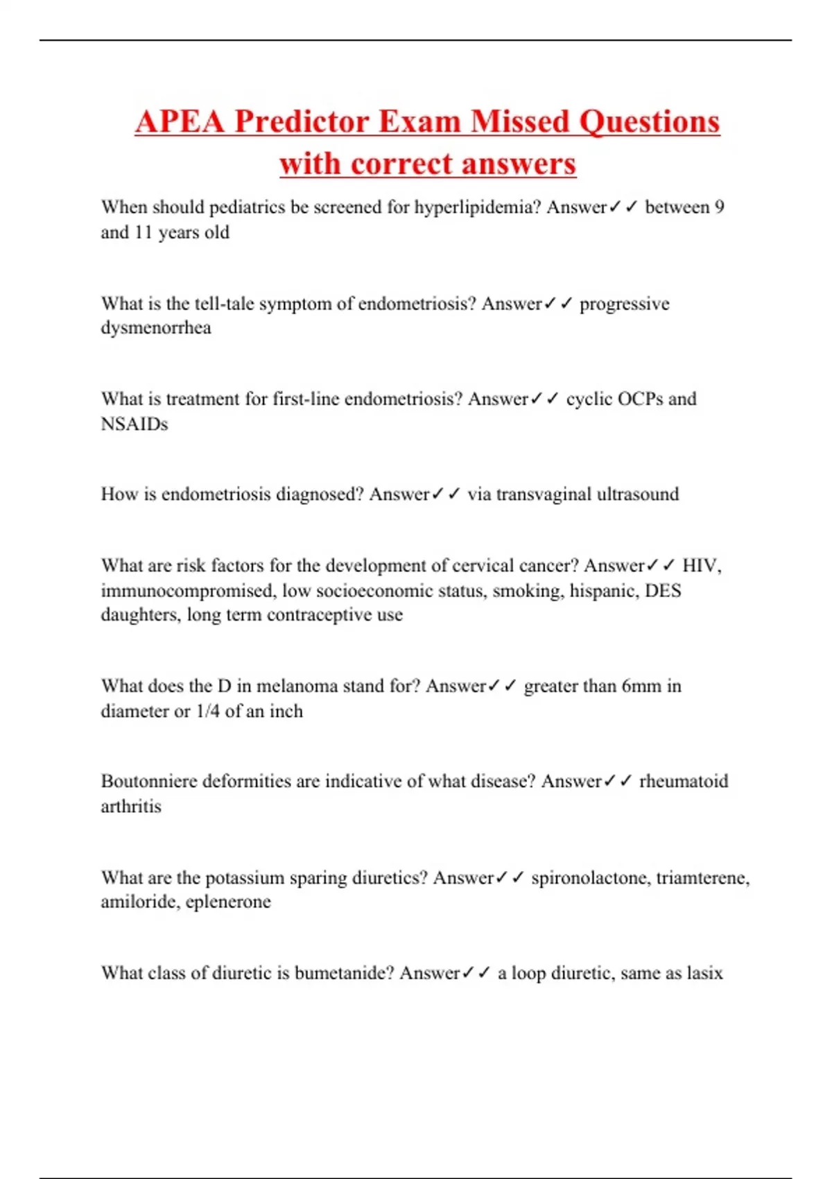 APEA Predictor Exam Missed Questions And Answers with Complete Solutions