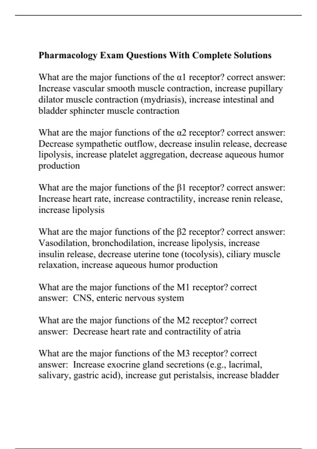 Pharmacology Exam Questions With Complete Solutions.