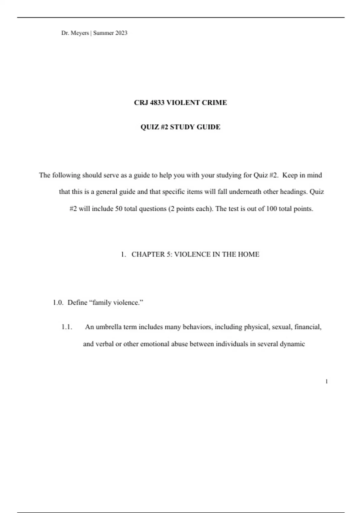 Study guide Violent Crime CRJ 4833 and Violence in Society SOC 4023. Chapters 5, 6, 8,9 5. Violence in the Home 6. Rape and Sexual Assault 6. Rape and Sexual Molestation 8. Hate Crime 9. Crowd Violence *Violence The Enduring Problem