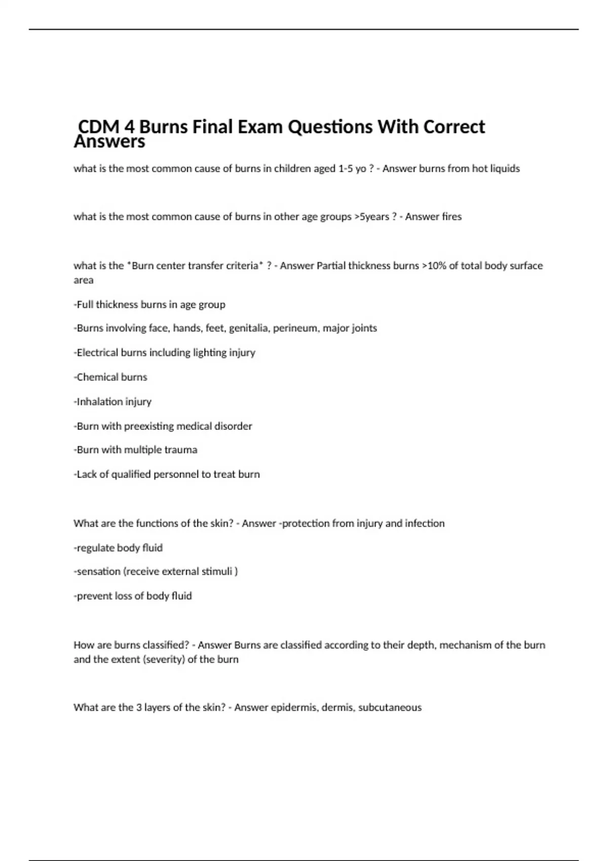 CDM 4 Burns Final Exam Questions With Correct Answers