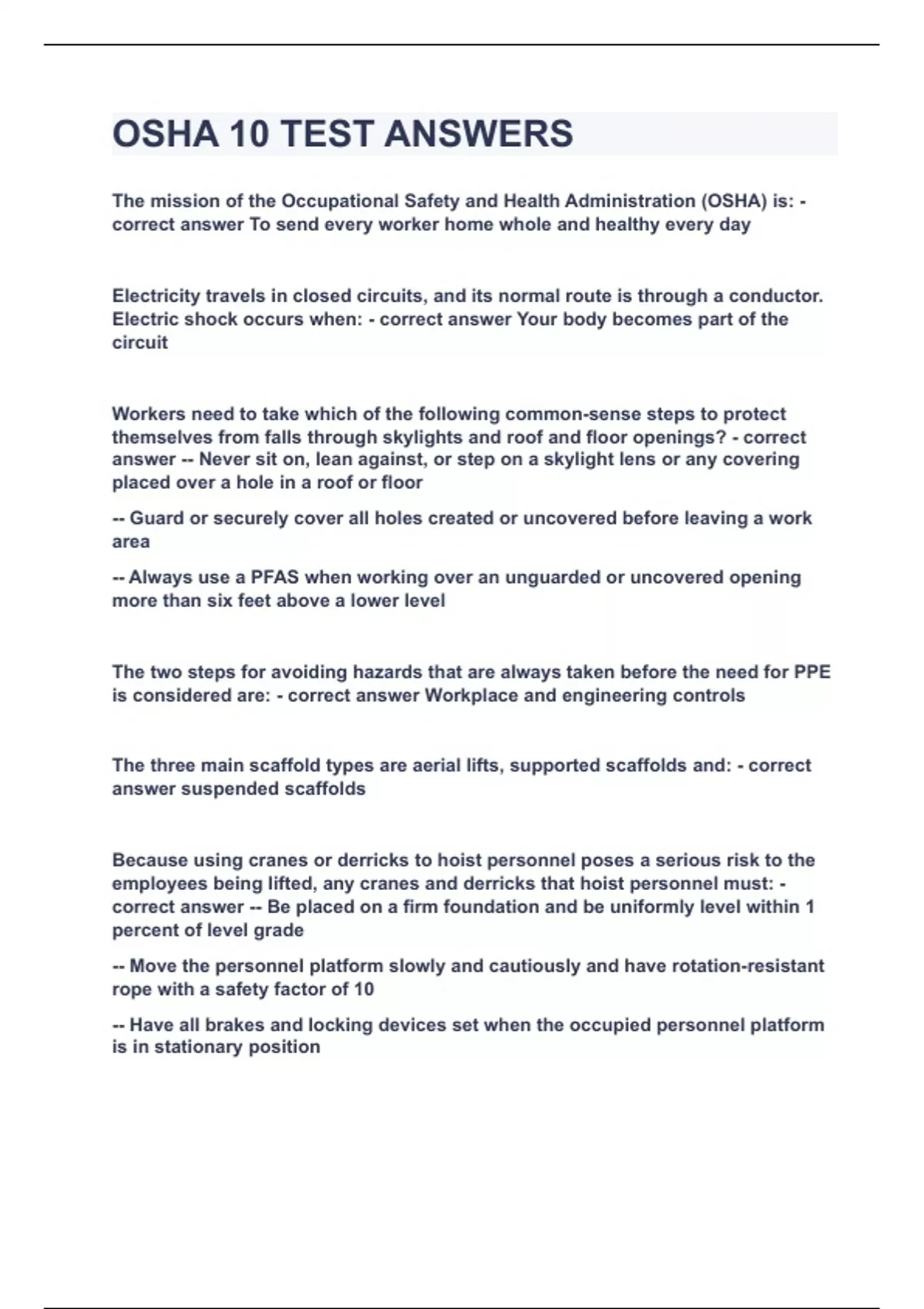 osha 10 test answers|updatedampverified|100 solved|