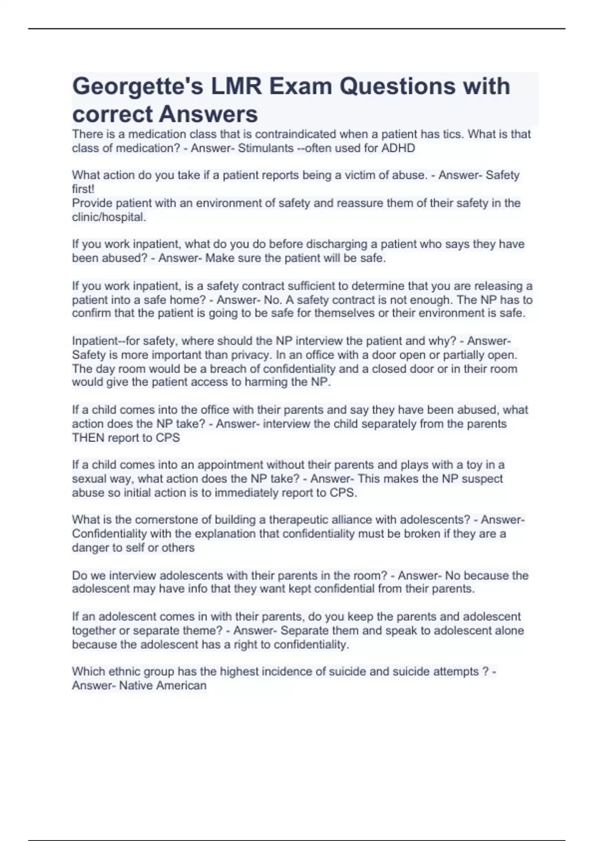 Georgette s LMR /PMHNP Exam Bundle
