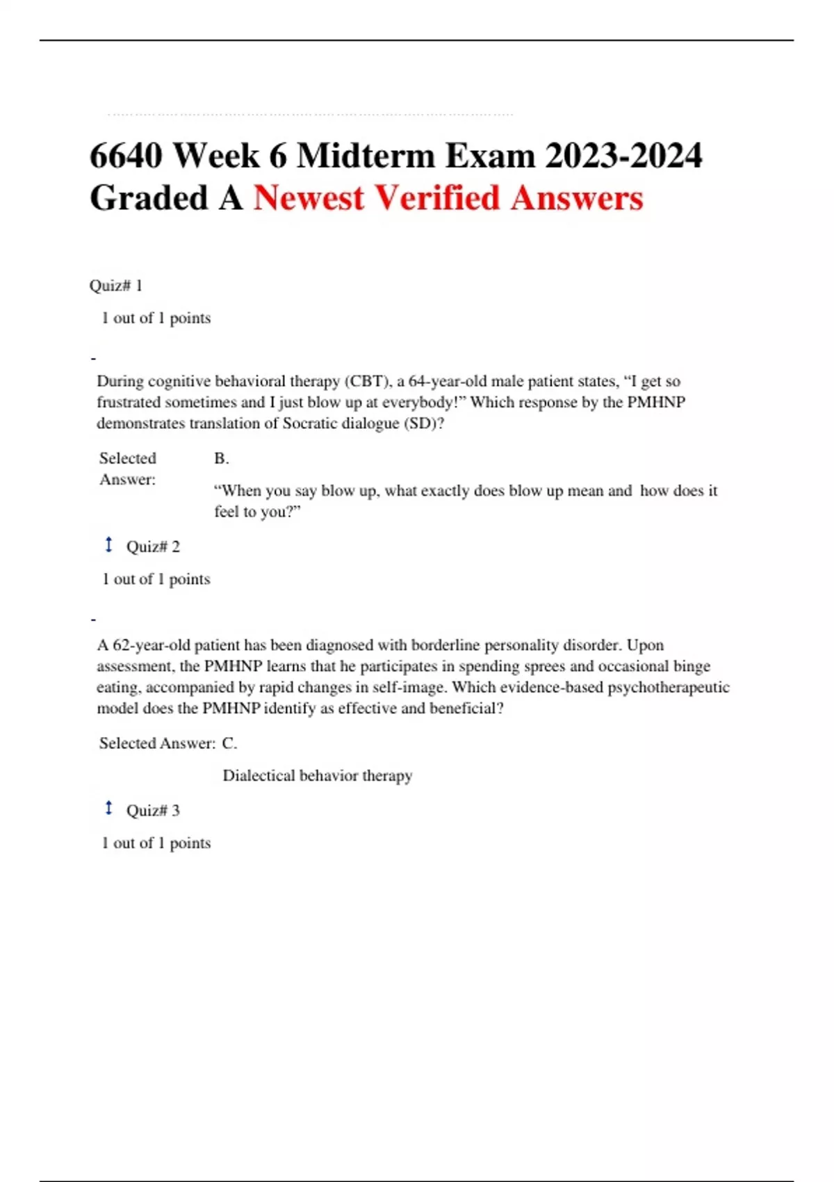 6640 Week 6 Midterm Exam Graded A Newest Verified Answers