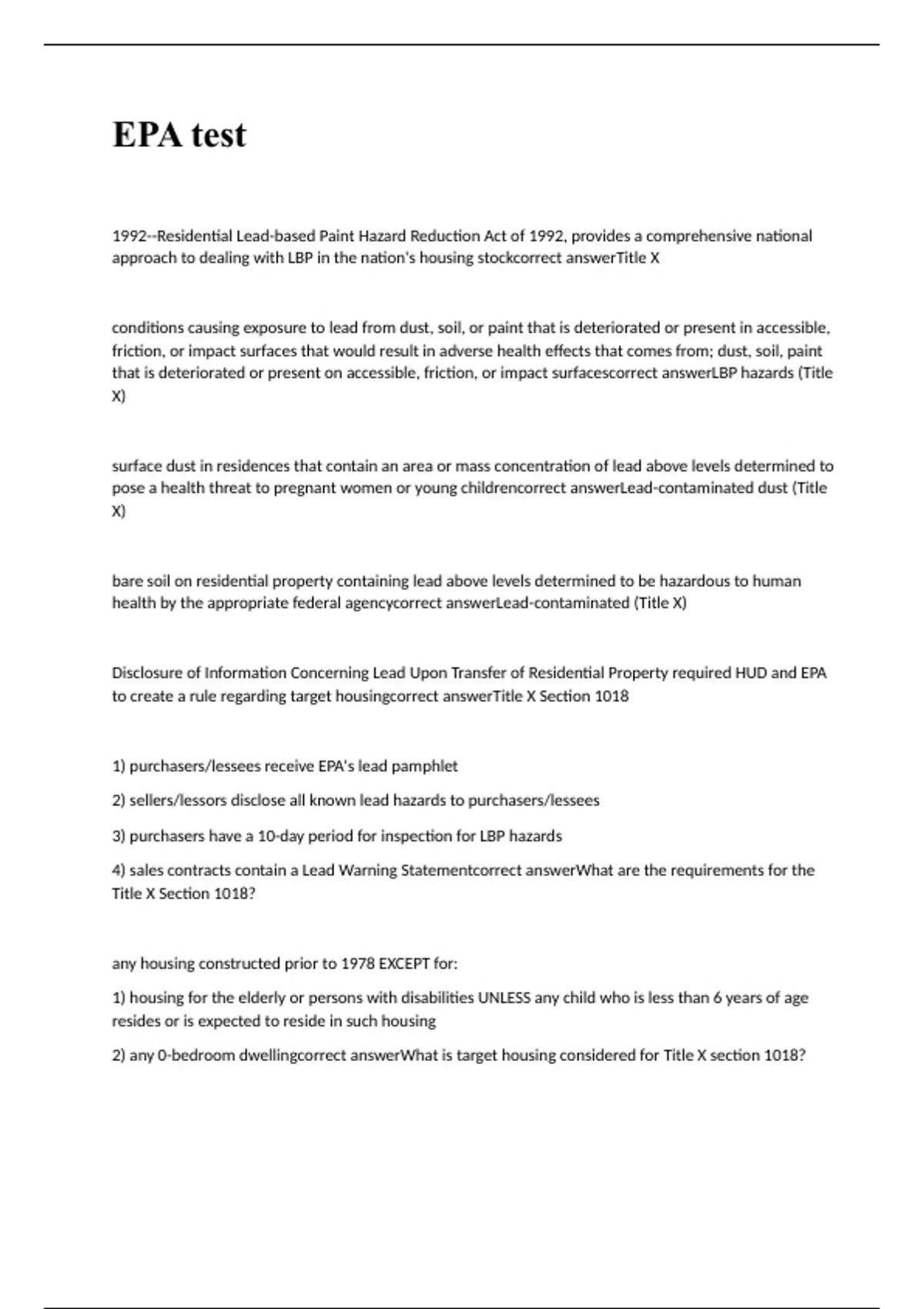 EPA exam test with 100% correct answers