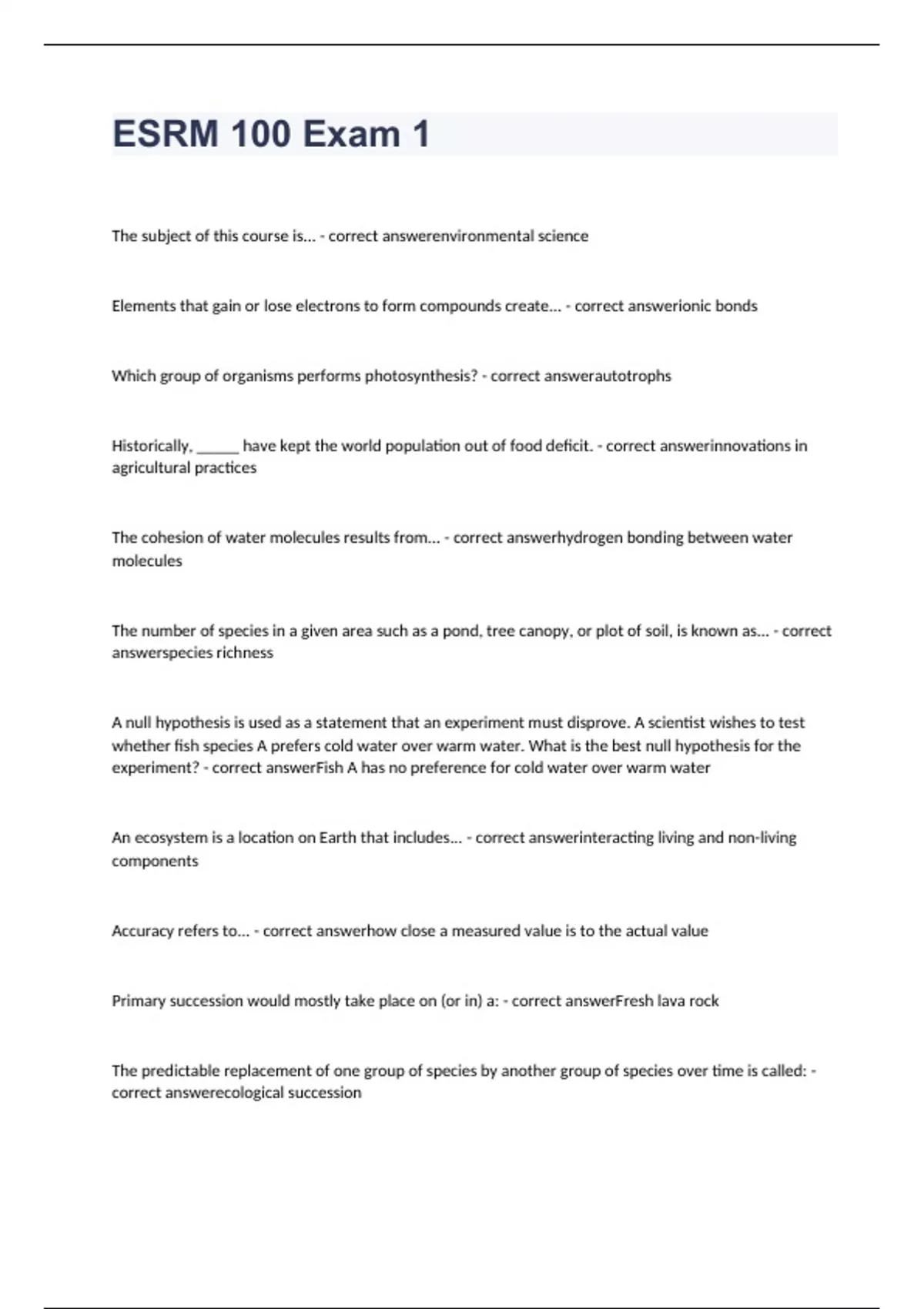 esrm 100 exam 2023 with 100 correct answers