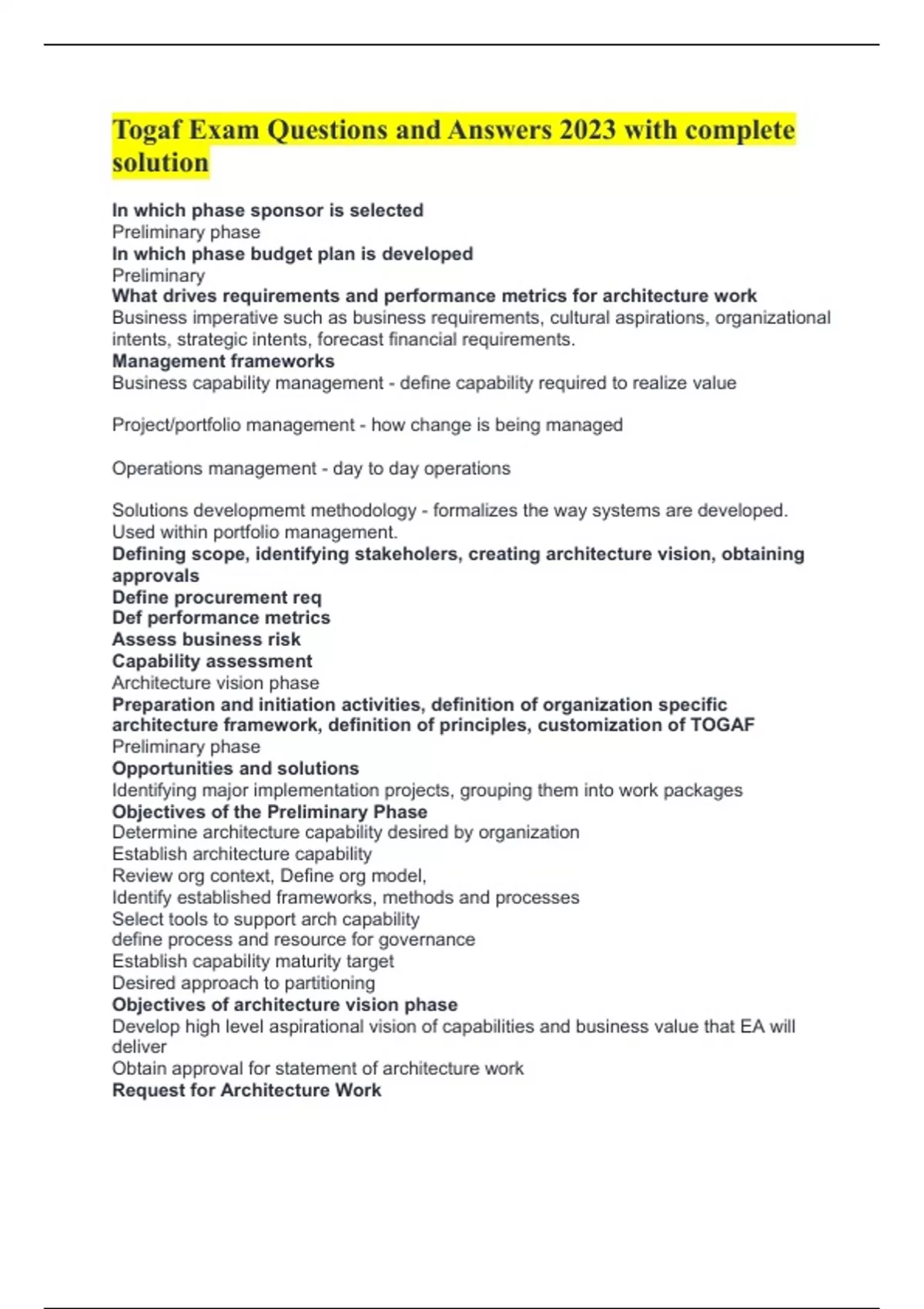 ,Output of preliminary phase and non-architectural input to architecture vision phase.