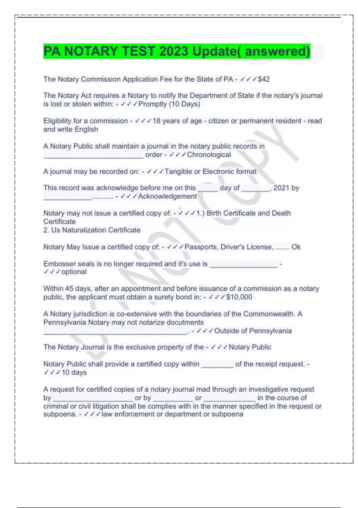 PA NOTARY TEST 2023 Update( answered)