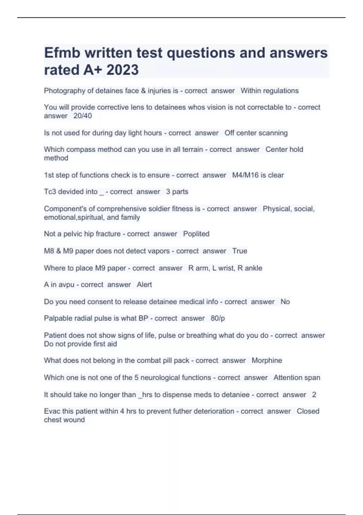 PACKAGE DEAL EFMB QUESTION AND ANSWERS COMPILATION 2023