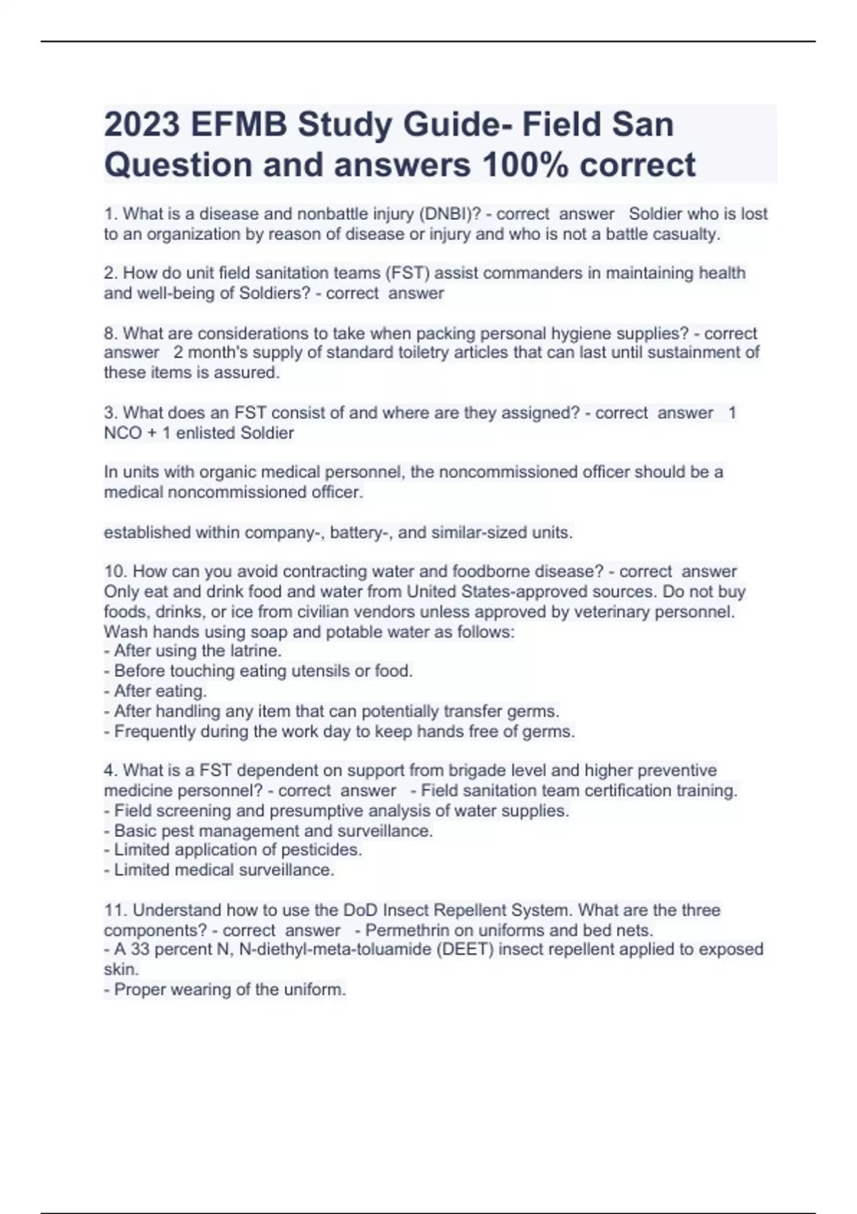 2023 EFMB Study Guide- Field San Question and answers 100% correct