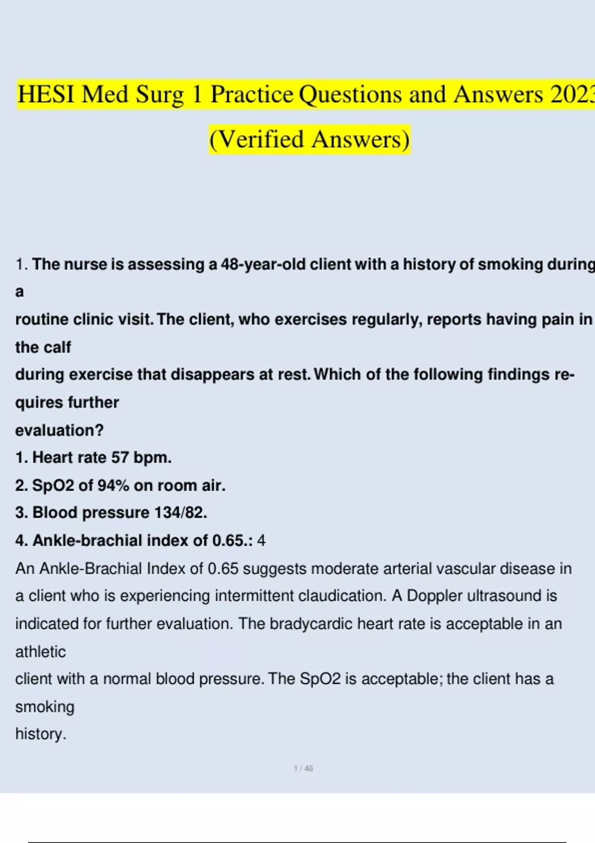HESI MED SURG 1 EXAM 2023 STUDY BUNDLE PACK SOLUTION (Verified Answers)