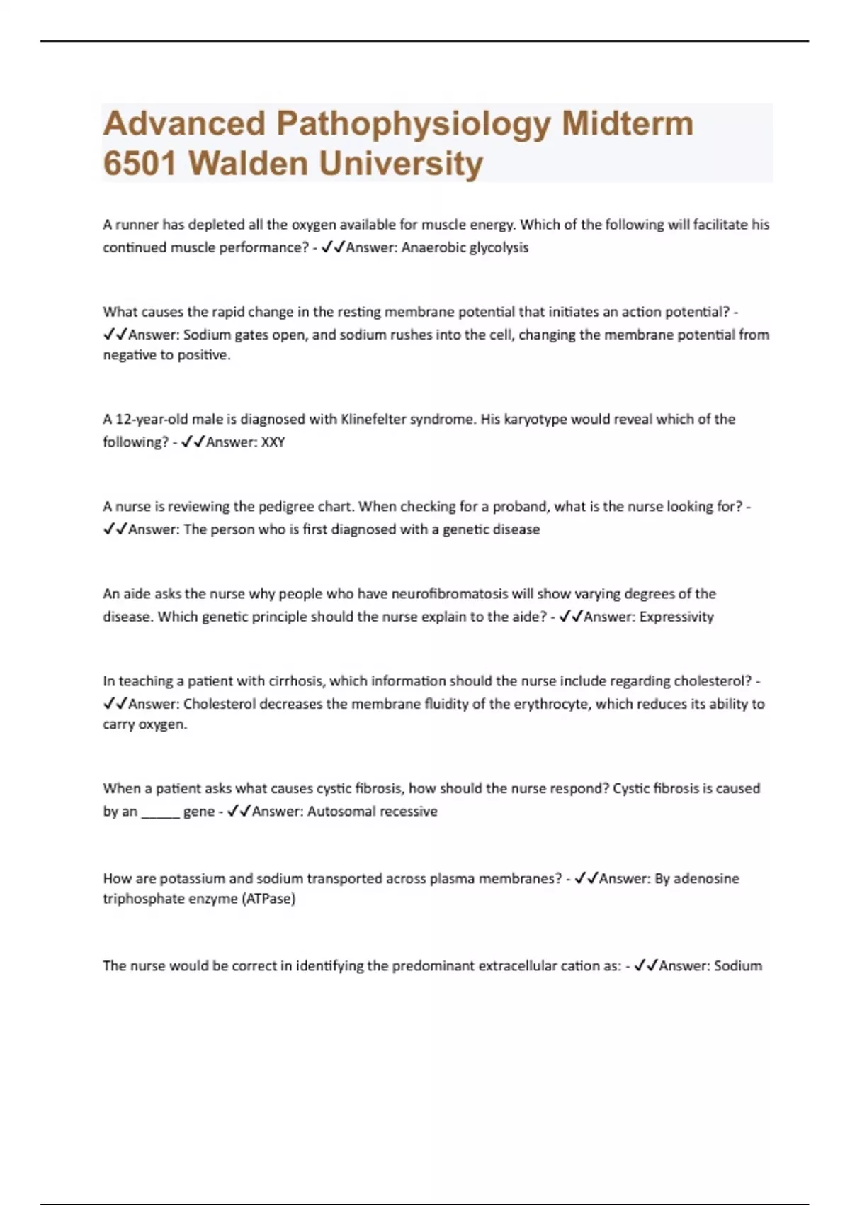 Advanced Pathophysiology Midterm 6501 Walden University | 66 Questions and Answers(A+ Solution guide)