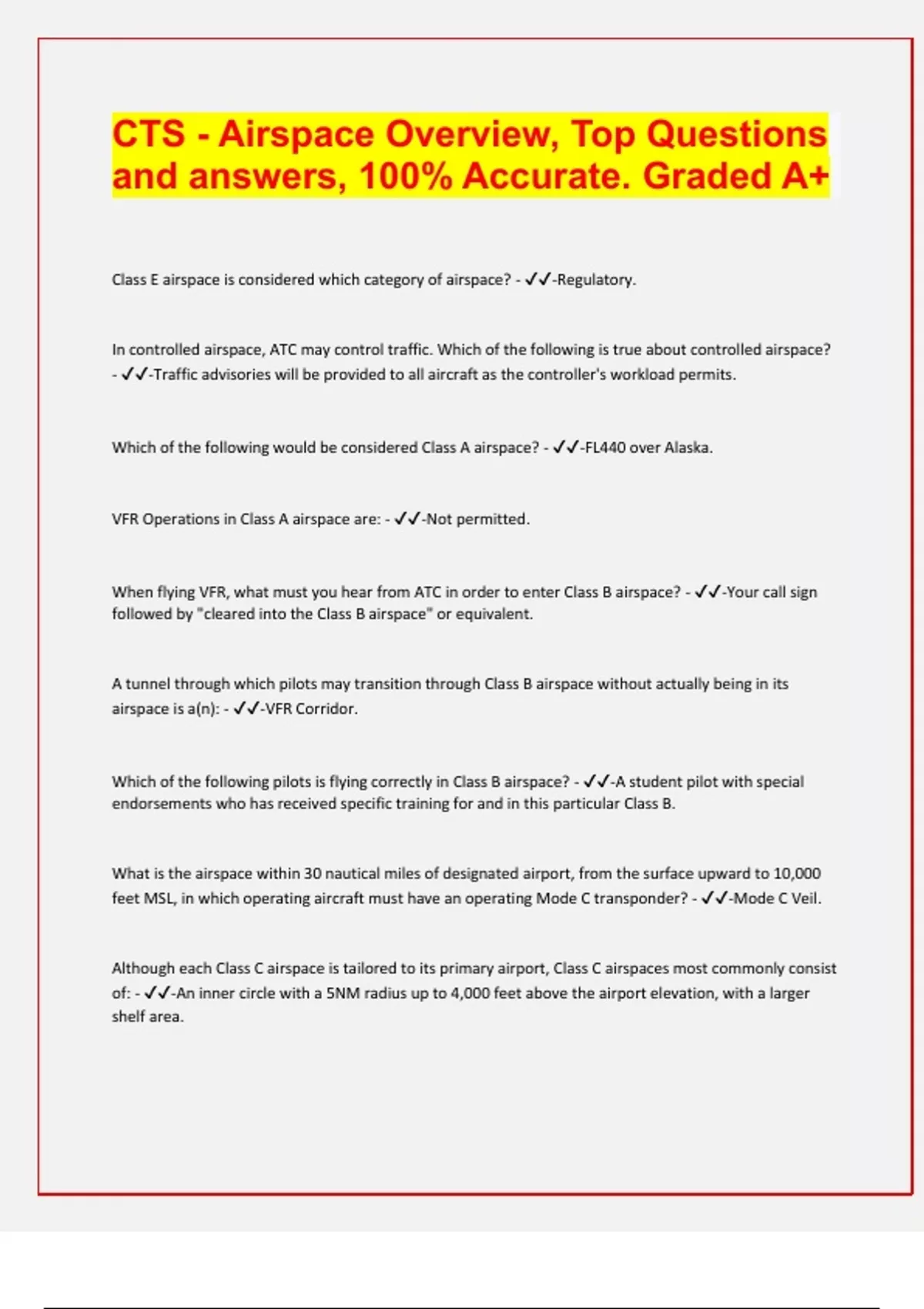 CTS - Airspace Overview, Top Questions and answers, 100% Accurate. Graded A+