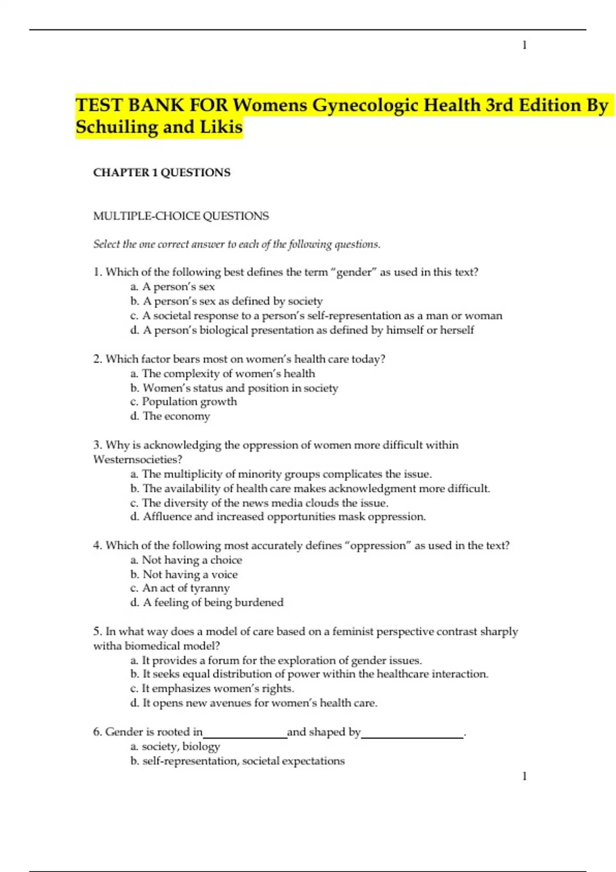 TEST BANK FOR Womens Gynecologic Health 3rd Edition By