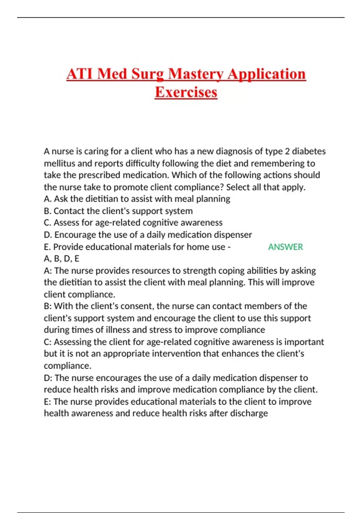 ATI Med Surg Mastery Application Exercises