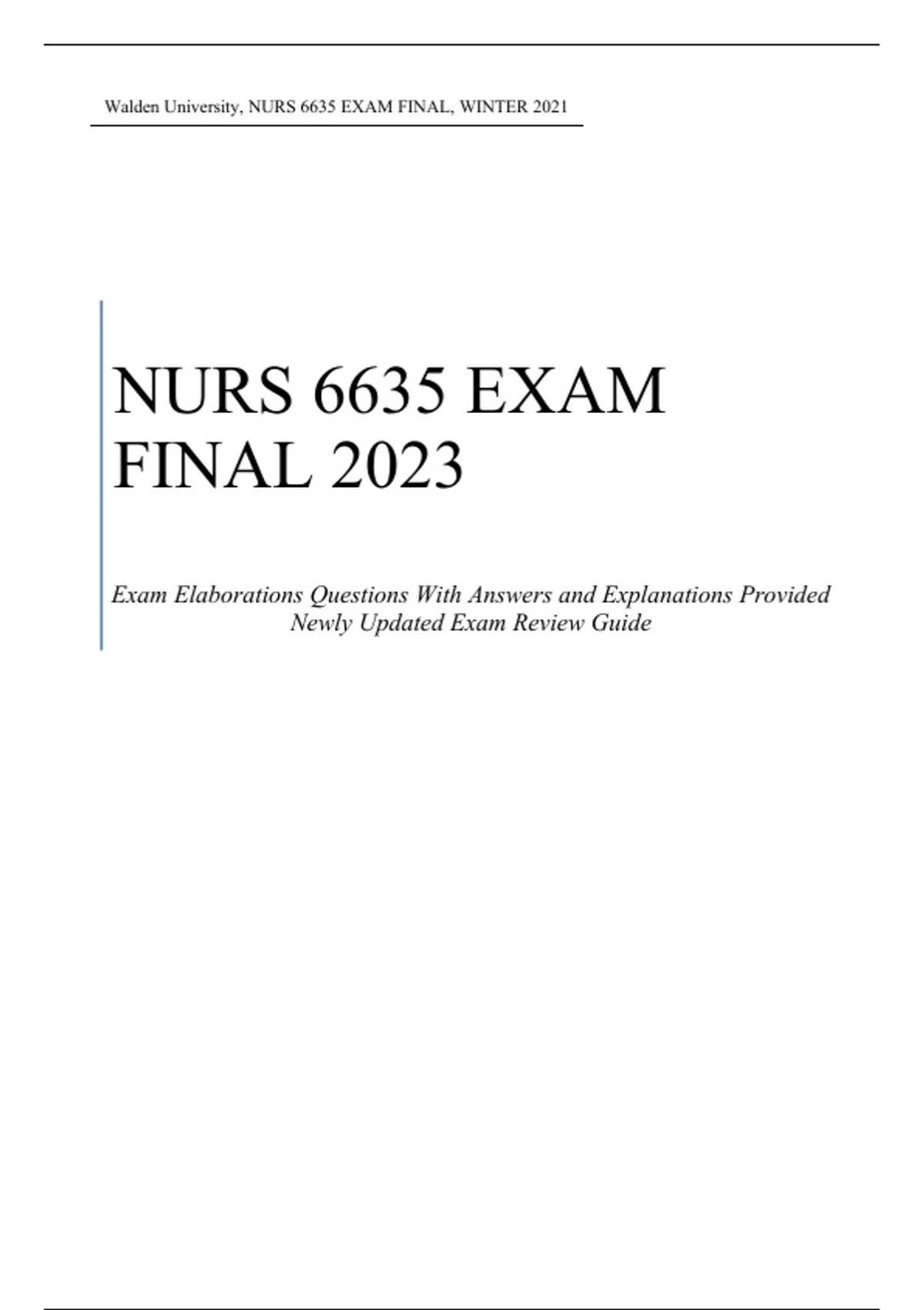 WALDEN UNIVERSITY, NURS 6635 EXAM FINAL, 2023 Exam With Solved Solutions.
