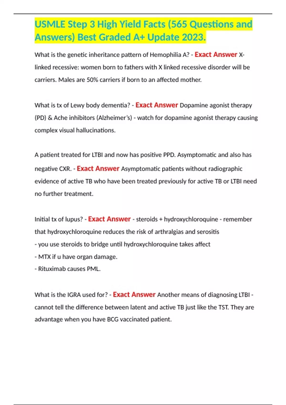USMLE Step 3 High Yield Facts (565 Questions and Answers) Best Graded A+ Update 2023.
